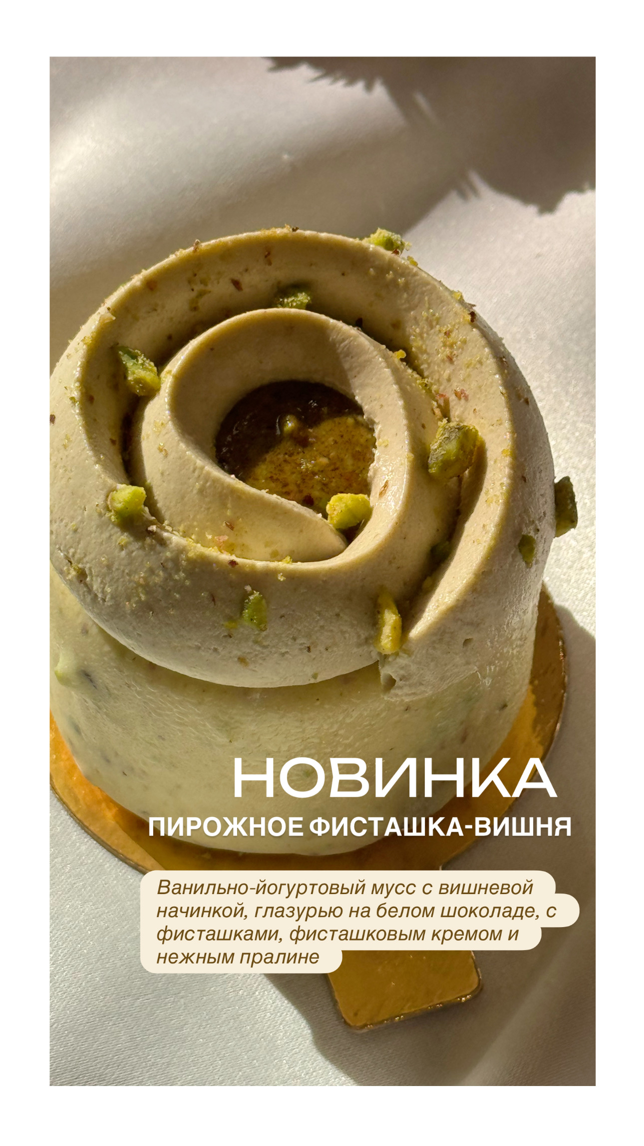 Наши феи-кондитеры смешали свои кулинарные навыки с осенними красками и получили шедевр — пирожное Фисташка-вишня!